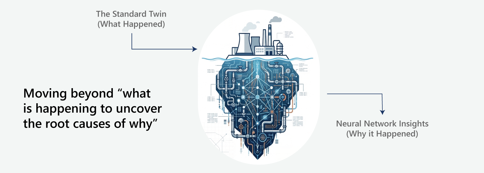 Neural Networks help Digital Twins move beyond “what is happening” to explain why it is happening. By analysing correlations across process variables, asset behaviour, and environmental conditions, they uncover root causes of inefficiency and instability.